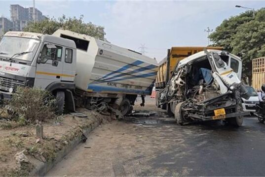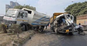 SPR रोड पर बड़ा हादसा: क्रेशर से भरा ट्रॉला स्वीपिंग मशीन से टकराया, 6 घंटे तक 5 किमी लंबा...