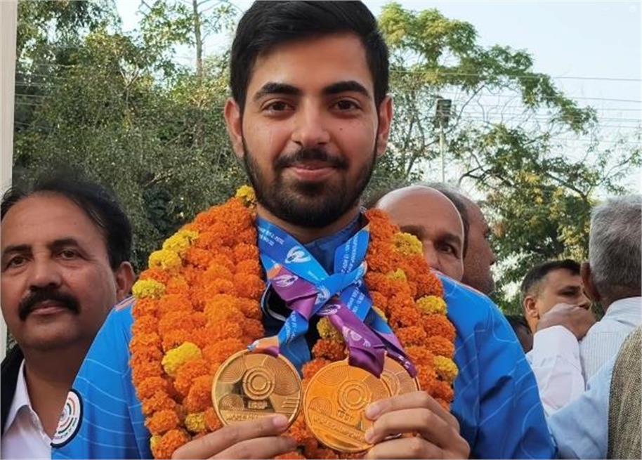 करनाल : खेल मैदान में हरियाणा के लिए एक अच्छी खबर है। करनाल निवासी युवा निशानेबाज सम्राट राणा ने काहिरा में आयोजित ISSF चैम्पियनशिप में गोल्ड मेडल जीतकर हरियाणा और हिंदुस्तान का गौरव देश में बढ़ाया है। उन्होंने पुरुष प्रतियोगिता में 10 मीटर एयर पिस्टल प्रतियोगिता में शानदार प्रदर्शन करते हुए ये उपलब्धि हासिल की है। जिसके बाद सम्राट राणा के उनके शहर में पहुँचने पर उनका जोरदार स्वागत किया। फाइनल मुकाबले में सम्राट राणा ने 243.7 अंक हासिल करते हुए गोल्ड मेडल जीता। राणा पुरुषों की 10 मीटर एयर पिस्टल इवेंट में गोल्ड जीतकर भारत के पहले गोल्ड मेडल जीतने वाले वल्ड चैम्पियन बने है।