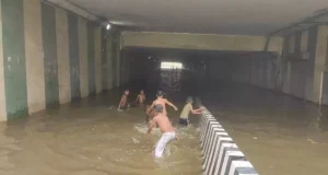 भिवाड़ी पानी से रैंप टूटा, धारूहेड़ा कॉलोनियों में जलभराव का हाल बेहाल