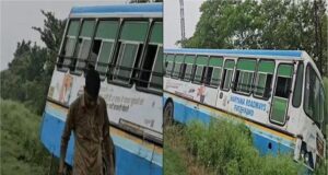 कैथल में बाल-बाल बचे 55 यात्री…सड़क से फिसलकर खड्डे में उतरी...