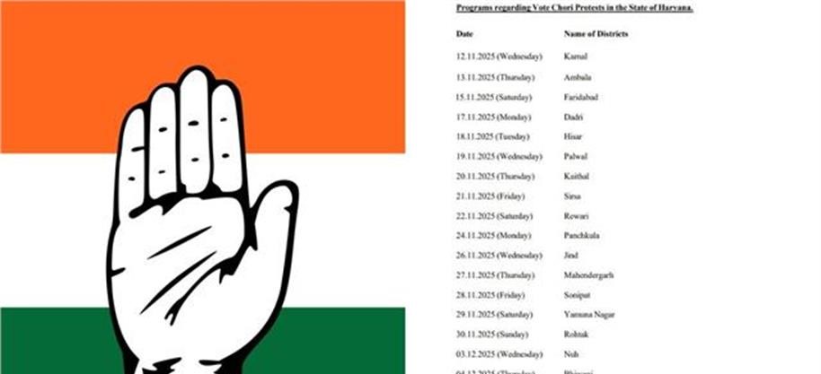 बता दें राज्यव्यापी आंदोलन की शुरुआत 12 नवंबर को करनाल से होगा। पहला प्रदर्शन सुबह 10 बजे सेक्टर-12 पेट्रोल पंप (पाठक हॉस्पिटल के पास) स्थित पार्किंग स्थल में होगा। कार्यक्रम में प्रदेश कांग्रेस अध्यक्ष राव नरेंद्र सिंह मुख्य अतिथि के रूप में और कांग्रेस कार्य समिति के सदस्य एवं सांसद दीपेंद्र सिंह हुड्डा भी शामिल रहेंगे। कांग्रेस ने तय किया है कि हर जिले में वोट चोरी को लेकर रोष प्रदर्शन होंगे और राष्ट्रपति को संबोधित ज्ञापन स्थानीय उपायुक्त के माध्यम से सौंपा जाएगा।