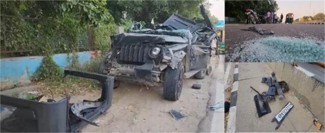 तस्वीरों में साफ दिखाई दे रहा है कि थार गाड़ी के परखच्चे उड़ गए। गाड़ी की हालत देखकर लग रहा है कि गाड़ी की रफ्तार काफी अधिक थी। ऐसे में यह असंतुलित होकर सीधे डिवाइडर से जा टकराई। गाड़ी पर उत्तर प्रदेश का नंबर रजिस्टर्ड है और गाड़ी दिल्ली से गुड़गांव की तरफ जा रही थी। यहां से मिले मृतकों और घायल के मोबाइल को पुलिस ने कब्जे में लेकर परिजनों से संपर्क करना शुरू कर दिया है।