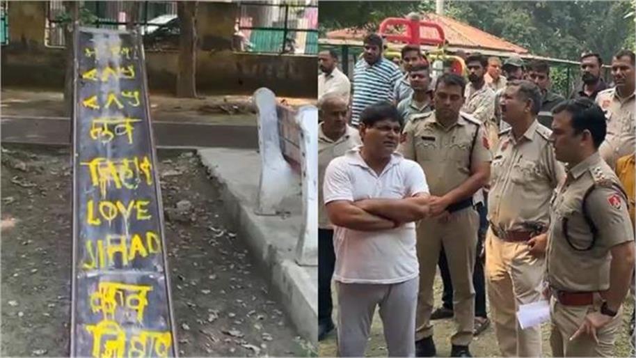 सोनीपत : कई राज्यों में आई लव मोहम्मद के स्लोगन से सियासत में उबाल है और आज हरियाणा के सोनीपत में भी इसकी आंच पहुंचती हुई नजर आ रही है। आज सोनीपत के मुरथल रोड स्थित श्री राम पार्क के झूलो पर आई लव मोहम्मद, अरबी भाषा में 786 और लव जिहाद के स्लोगन ने हिंदू धर्म के लोगों में रोष दिखाई दिया, इसकी सूचना पुलिस को दी गई तो पुलिस मौके पर पहुंची और मामले की गंभीरता से जांच में जुट गई, वही सोनीपत मेयर राजीव जैन ने भी पार्क का दौरा किया।
