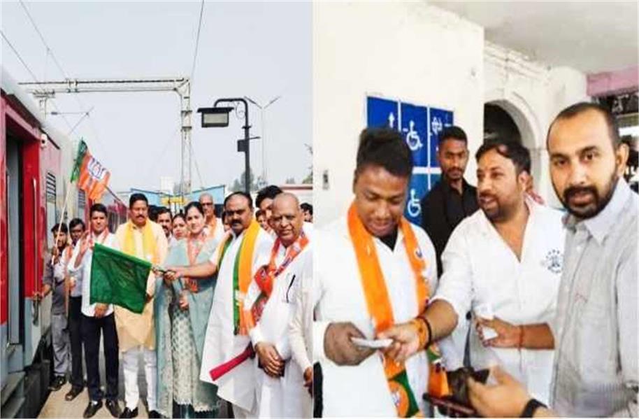 पानीपत : बिहार की ट्रेनों के छठ पर्व के बाद विधानसभा चुनाव में मतदान के लिए जाने वाले लोगों की संख्या बढ़ गई है। बिहार व दिल्ली जाने वाली ट्रेनों में पैर रखने को भी जगह नहीं है। वहीं बिहार के लिए विशेष ट्रेन भी चलाई हैं। इनमें दो ट्रेन सोमवार को रवाना की गई हैं। इस दौरान भाजपा जिला अध्यक्ष दुष्यंत भट्ट और मेयर कोमल सैनी समेत तमाम भाजपा नेता और कार्यकर्ता रेलवे स्टेशन पर पहुंचे और प्रवासी यात्रियों को फ्री टिकट वितरित किए। दुष्यंत भट्ट ने बताया कि यह पहल प्रवासी मतदाताओं की सुविधा को ध्यान में रखकर बिहार के लिए विशेष ट्रेन चलाई गईं हैं। वहीं, प्रवासी मतदाताओं को मुफ्त टिकट की सुविधा दी गई।