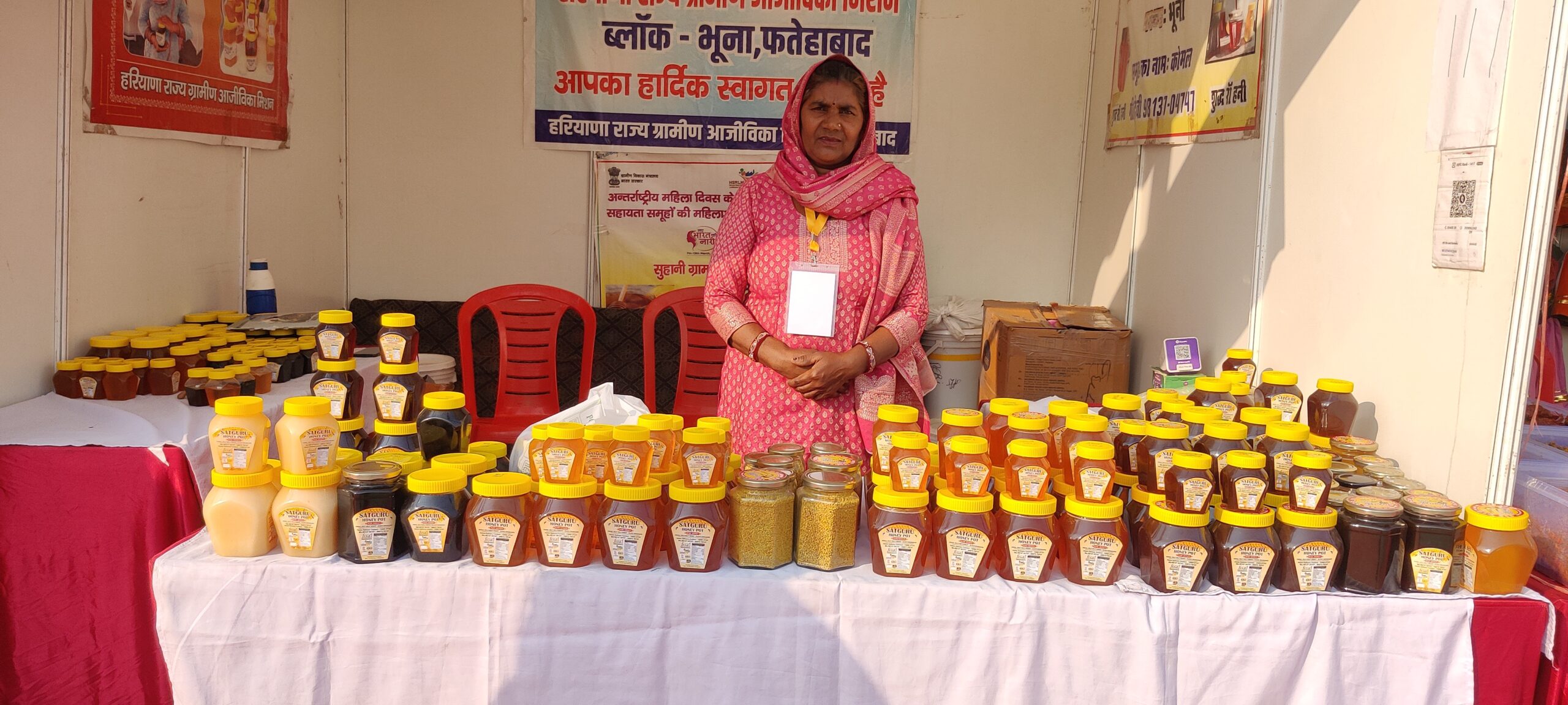 फरीदाबाद: हरियाणा के फरीदाबाद में सरस मेले में लगे अलग-अलग तरह के शुद्ध देसी हैंडमेड प्रोडक्ट देखने को मिल रहे हैं. जिसे लोग खुश होकर खरीद रहे हैं. यह प्रोडक्ट बाजारों में मिलने वाले प्रोडक्ट से एकदम अलग है. क्योंकि यह प्रोडक्ट कड़ी मेहनत से घर में बनाए गए हैं. वहीं, फतेहाबाद से आई महिला गीता देवी ने भी शुद्ध शहद की स्टॉल लगाई हुई है. इस शहद की खास बात यह है कि इसमें किसी प्रकार की कोई मिलावट नहीं की गई है. इस प्रोडक्ट में 6 तरह की वैरायटी आपको मिल जाएगी. इनका पूरा परिवार मधुमक्खी पालन से आज लाखों रुपये कमा रहा है.