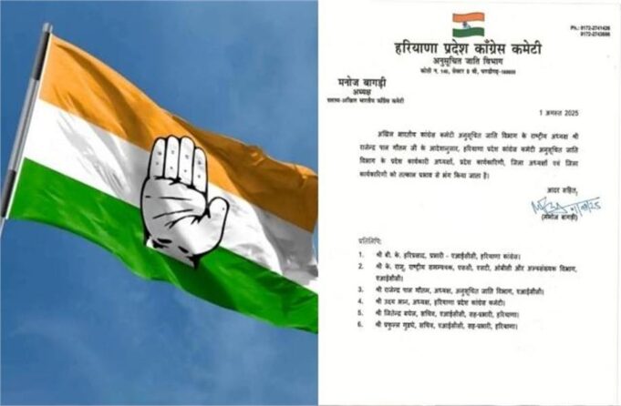 हरियाणा में प्रदेश कांग्रेस कमेटी अनुसूचित जाति विभाग की कार्यकारिणी को तत्काल प्रभाव से भंग कर दिया है। इसकी जानकारी कांग्रेस अनुसूचित जाति विभाग के अध्यक्ष मनोज बागड़ी ने पत्र जारी करके दी।