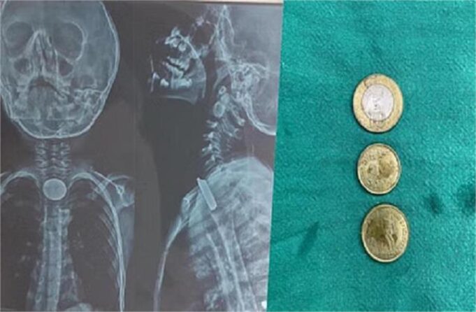 सोनीपत के रहने वाले 12 वर्षीय बच्चे ने खेल-खेल में तीन सिक्के निगल लिए। जिसके बाद तीनों सिक्के बच्चे की खाने की नली में फंस गए। एक सिक्का दस रुपए और पांच रुपये के दो सिक्के थे। सिक्के खाने के...
