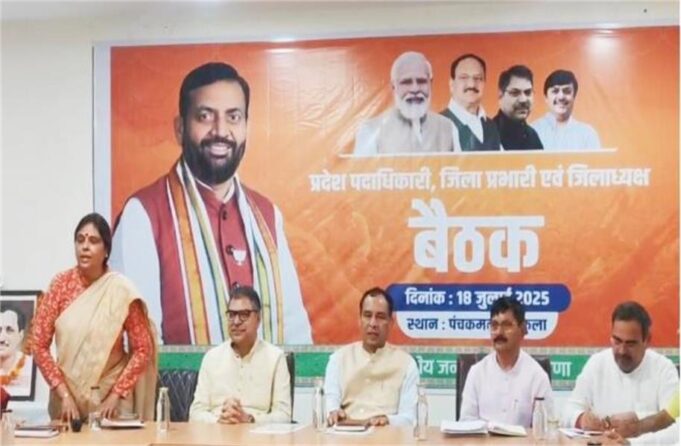पंचकूला : भाजपा की एक महत्वपूर्ण संगठनात्मक बैठक आज पार्टी के प्रदेश कार्यालय ‘पंच कमल’ में शुरू हुई। इस बैठक की अध्यक्षता भाजपा प्रदेश अध्यक्ष मोहन लाल बड़ौली कर रहे हैं। हरियाणा के मुख्यमंत्री नायब सिंह सैनी भाजपा की राज्य...