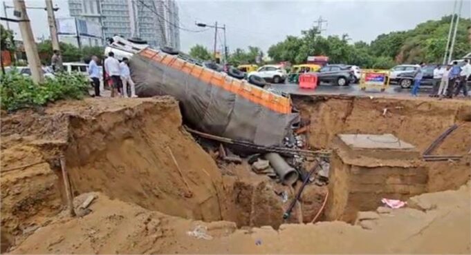 गुड़गांव: गुड़गांव में बारिश हो और सड़क न धंसे, ऐसा हो ही नहीं सकता। तस्वीरों में दिखाई दे रहा यह नजारा कहीं और का नहीं बल्कि गुड़गांव के एसपीआर रोड का है। तेज बारिश में यहां सर्विस रोड की सड़क...