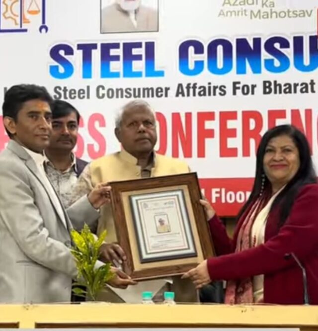 नई दिल्ली, 18 दिसंबर 2025 : भारतीय विधि संस्थान ( इंडियन लॉ इंस्टीट्यूट)में आज मीडिया की मौजूदगी में इस्पात उपभोक्ता मंच की नई टीम का परिचय करवाया गया। इस मौके पर इस्पात उपभोक्ता मंच की अध्यक्षा सुश्री निवेदिता शर्मा जी के नेतृत्व में नई टीम को सम्मानित किया गया।इस दौरान कार्यक्रम में विधि विभाग एवं इस्पात संस्थानो के अन्य अधिकारी भी उपस्थित हुए। इस अवसर पर फोरम की अध्यक्षा सुश्री निवेदिता शर्मा जी को विजय भारद्वाज गुलदस्ता भेंट कर उन्हें सम्मानित किया।तथा वहीं फोरम के समन्वयक डॉ. संतोष राय जी का सम्मान भाजपा के वरिष्ठ नेता श्री विजय भारद्वाज ने किया।फोरम की अध्यक्षा सुश्री निवेदिता शर्मा ने अलीगढ़ से भाजपा नेता श्री राज कुमार तोमर को उत्तर प्रदेश इकाई के निदेशक का नियुक्ति पत्र देकर उन्हें नियुक्त किया गया । इस दौरान श्री राज कुमार तोमर जी ने अपने वक्तव्य में बोलते हुए कहा कि आने वाले दिनों में प्रत्येक राज्यों से आवेदन लिए जाएंगे।जिससे कि राज्यों में फोरम का काम सुचारू रूप से चल सके। इस्पात उपभोक्ता मंच के प्रमुख समन्वयक डॉक्टर संतोष राय ने उत्तर प्रदेश के नव नियुक्त निदेशक श्री राज कुमार तोमर जी को बधाई देते हुए उन्हें सम्मानित किया।और इसके अलावा इस्पात विभाग के वरिष्ठ अधिकारी श्री मनोज कुमार का भी अभिनंदन किया गया।इस्पात उपभोक्ता मंच के प्रमुख समन्वयक डॉ संतोष राय जी ने फोरम की विस्तृत जानकारी देते हुए बताया कि फोरम कैसे कार्य करता है और आगे की क्या रणनीति होगी।उन्होंने यह भी बताया की स्टील कंज्यूमर फोरम के राष्ट्रीय कार्यकारी निकाय और राज्य अधिकारी निकाय का कार्यकाल 3 वर्ष का होता हैं।इस्पात उपभोक्ता मंच इस्पात उपभोक्ता का एक मंच है जो इस्पात उत्पादकों के साथ उनके विवादों का समाधान करता है। स्टील कंज्यूमर फोरम इस्पात उद्योगों के लिए इस्पात एक नीति बनाता है।स्टील कंज्यूमर फोरम इस्पात उद्योगों के लिए इस्पात का मूल्यांकन रेटिंग बोर्ड का भी संचालन करता है।इसके साथ साथ कानूनी बोर्ड का भी संचालन करता है।और स्टील कंज्यूमर फोरम इस्पात उद्योग के लिए लौह एवं इस्पात के क्षेत्र में अनुसंधान को बढ़ावा देता है।इस कार्यक्रम में विधि विभाग से वरिष्ठ अधिवक्ता श्री नीरज श्री वास्तव, श्री कौशल नारायण , और अधिवक्ता श्री सचिन राय, श्री अरविंद गुलाटी ,श्री मति पूजा राय के अलावा अन्य गणमान्य व्यक्ति उपस्थित हुए।तथा वहीं कार्यक्रम का मंच संचालन भाजपा नेता श्री विजय भारद्वाज ने किया।