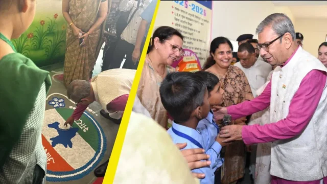 रोहतक। राजकीय वरिष्ठ माध्यमिक विद्यालय खरावड़ में शनिवार को राज्यपाल प्रो. असीम कुमार घोष अपनी पत्नी मित्रा घोष के साथ पहुंचे। इस दौरान स्कूल के स्वागत द्वार पर बनी रंगोली में भारत का नक्शा गलत बना देखकर राज्यपाल ने खुद ठीक किया और बताया कि बंगाल का क्षेत्र अंदर से होकर बनता है। उन्होंने कहा कि भारत का मानचित्र हमारी पहचान है।