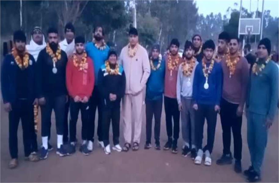 पदक जीतकर अखाड़े में लौटे पहलवानों का किया स्वागत
