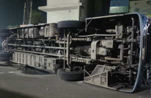 नेशनल हाईवे-44 पर ट्रक से टक्कर, वॉल्वो बस पलटी; सात घायल