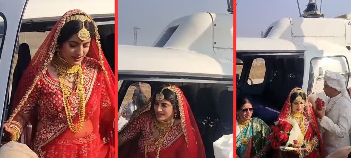 हिसार में हेलिकॉप्टर से आई दुल्हन, BJP विधायक के भतीजे ने लाया, गांव में उमड़ी भारी भीड़
