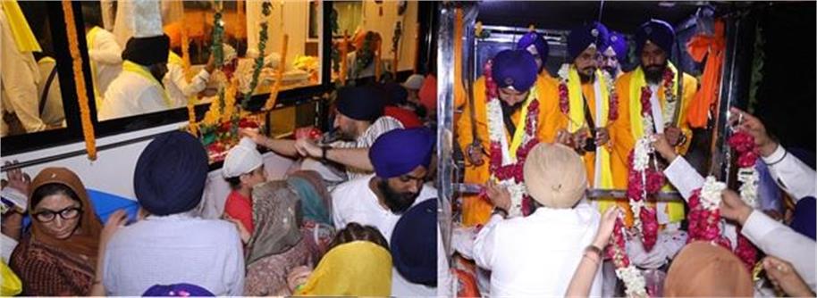 नगर कीर्तन की अगुवाई पंज प्यारों ने की। इसके बाद नगर कीर्तन को द्रोणाचार्य मेट्रो स्टेशन के पास तक संगत विदा करके आई जिसके बाद दिल्ली गुरुद्वारा प्रबंधक कमेटी द्वारा दिल्ली ले जाया गया। यहां निर्धारित कार्यक्रम के अनुसार दिल्ली में ही ठहराव होगा और इसके बाद यह नगर कीर्तन आनंदपुर साहिब के लिए रवाना हो जाएगा। 24 नवंबर को गुरु तेग बहादुर जी की शहादत दिवस के अवसर पर यह नगर कीर्तन आनंदपुर साहिब में सम्पन्न हो जाएगा।