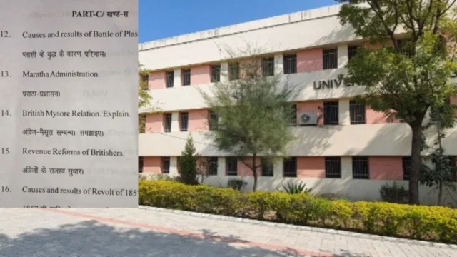 राजस्थान के उदयपुर स्थित मोहनलाल सुखाड़िया विश्वविद्यालय एक बार फिर से चर्चा में है. कुलपति द्वारा औरंगजेब को अच्छा प्रशासक बताने का विवाद थमा ही नहीं कि अब एक और विवाद शुरू हो गया है. बीए फोर्थ सेमेस्टर के इतिहास के पेपर में मराठा को पराठा बताने सहित कई गड़बड़ियां देखने को मिली और आउट ऑफ सिलेबस सवाल देखकर छात्र भड़क उठे. एबीवीपी ने जमकर हंगामा किया तो परीक्षा नियंत्रण को पद से इस्तीफा देना पड़ा. आइए जानते हैं कि पूरा मामला क्या है.