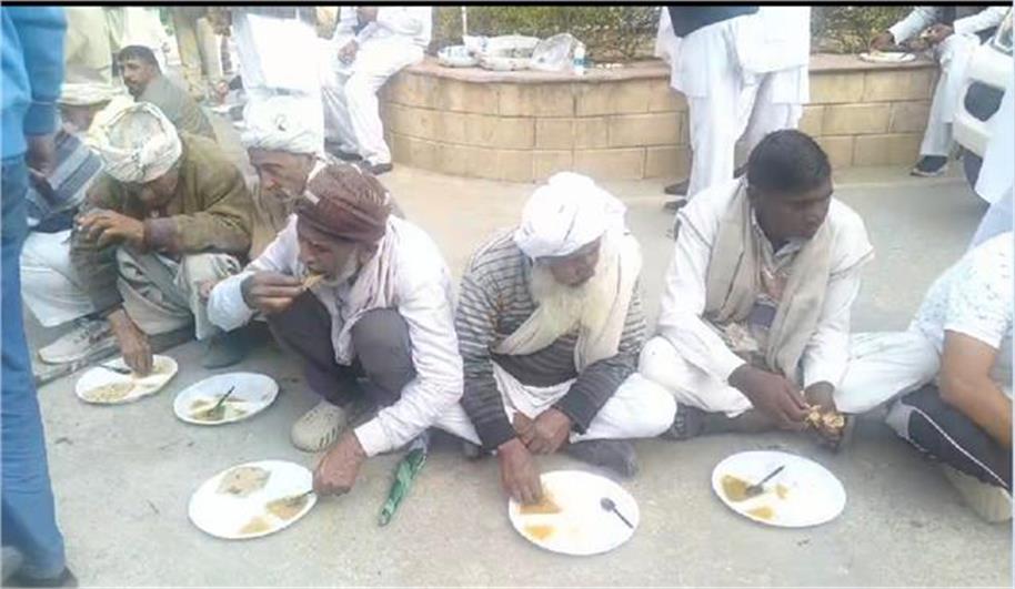 जींद : हरियाणा के जींद जिले की धरती पर शुक्रवार को उस समय अनोखा नजारा देखने को मिला जब नाराज किसान लघु सचिवालय के मुख्य द्वार पर धरने पर बैठे ही नहीं, बल्कि वहीं जमीन पर दरी बिछाकर सैकड़ों लोगों के लिए लंगर लगा दिया। करीब 500 किसानों ने एक साथ हाथ में कटोरी थामे लंगर ग्रहण किया तो सचिवालय में बैठे अधिकारी भी खिड़कियों से झांकते रह गए और कई बाहर निकलकर हैरानी से यह दृश्य देखते रहे।