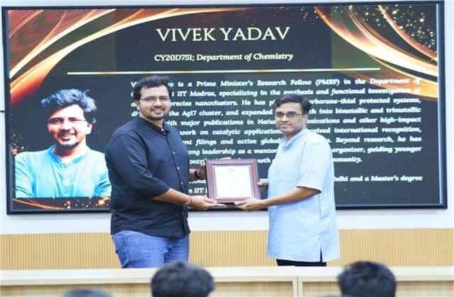 नारनौल : स्थानीय हुडा सेक्टर निवासी अशोक यादव का पुत्र विवेक यादव को आईआईटी मद्रास ने इंस्टीट्यूट रिसर्च अवार्ड-2025 से सम्मानित किया है। उनको यह सम्मान आईआईटी मद्रास के डीन शांति पवन ने विगत 10 अक्टूबर को दिया। विवेक यादव के प्रोफेसर पद्मश्री टी प्रदीप है।